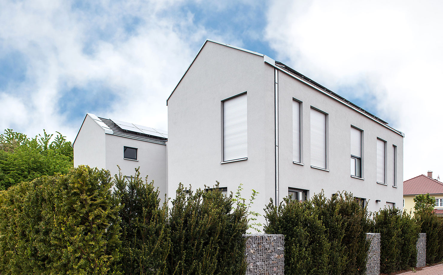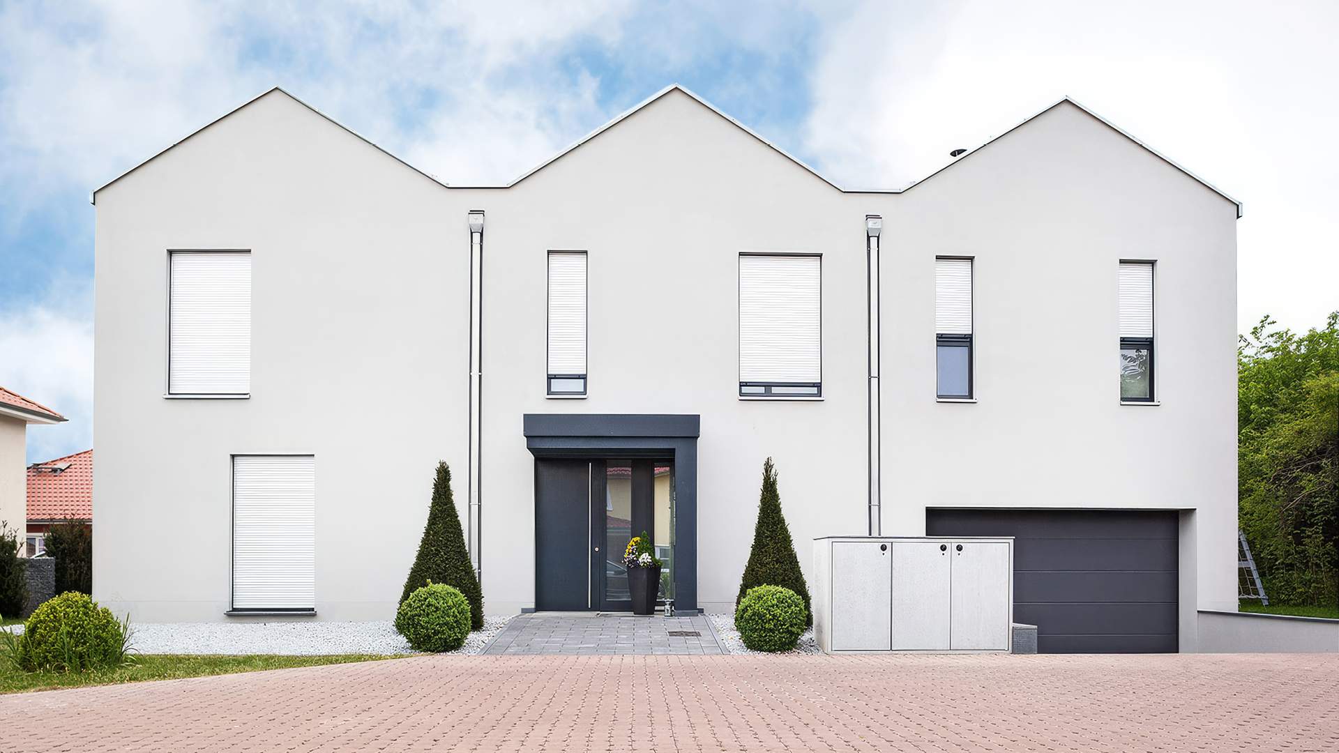 Harmonie unter drei Spitzen...Schon beim ersten Blick fällt die besondere Dachstruktur ins Auge: drei versetzt angeordnete Satteldächer prägen die moderne, unverwechselbare Silhouette und verleihen dem Haus eine eigenständige Architektur.